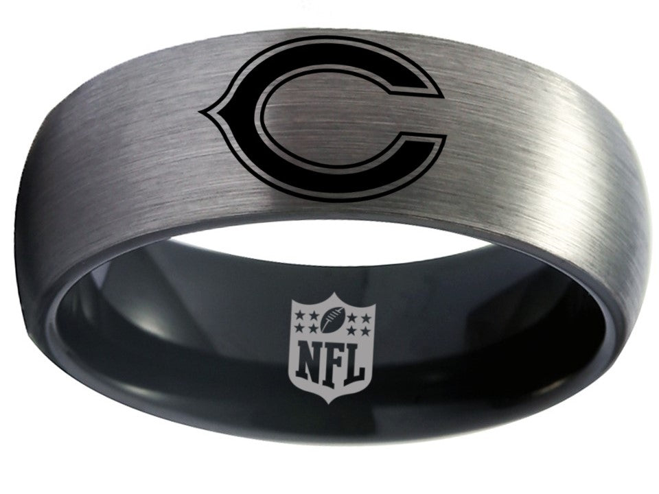 Chicago Bears Ring Silver & Black 8mm Tungsten Ring Sizes 6 - 13 – Exclusive Inspirations