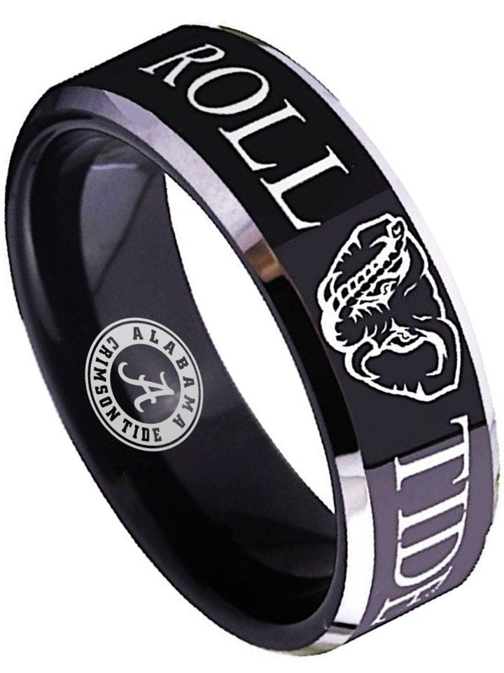 Alabama Ring Crimson Tide Ring 8mm Black Wedding Ring Sz 4 - 17 #RollTide