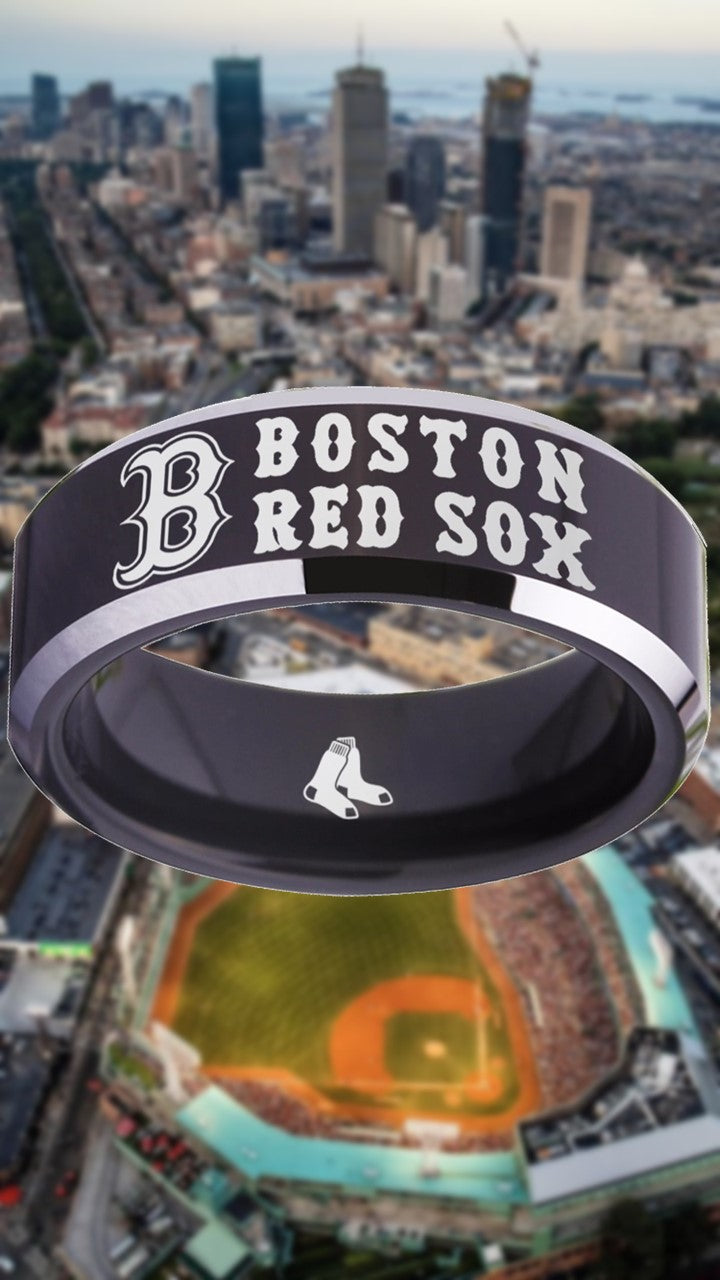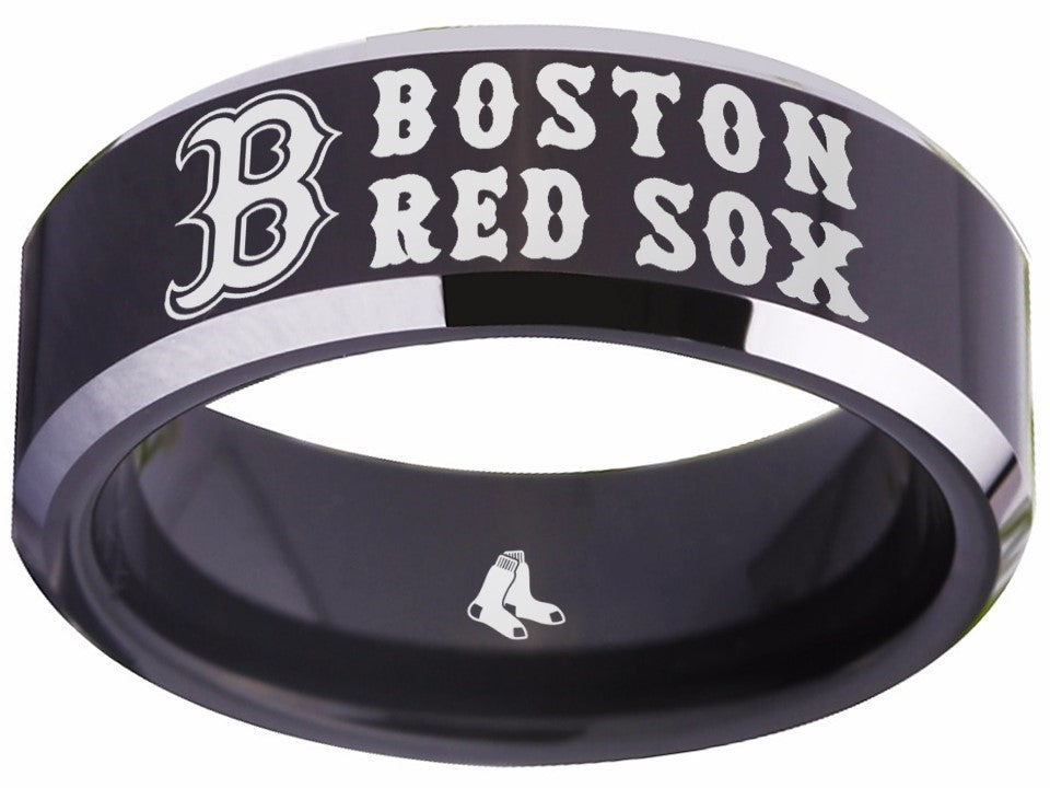 Boston Red Sox Ring Red Sox Wedding Ring Black & Silver Size 4 - 17 #boston #redsox