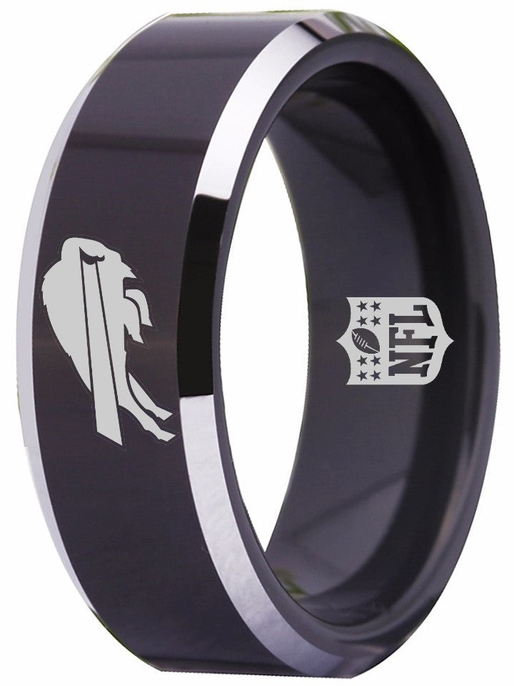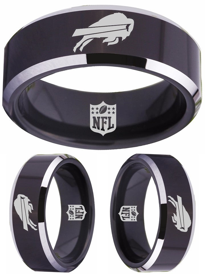 Buffalo Bills Ring Bills Black & Silver Wedding Band | Sizes 4-17 #buffalo #bills