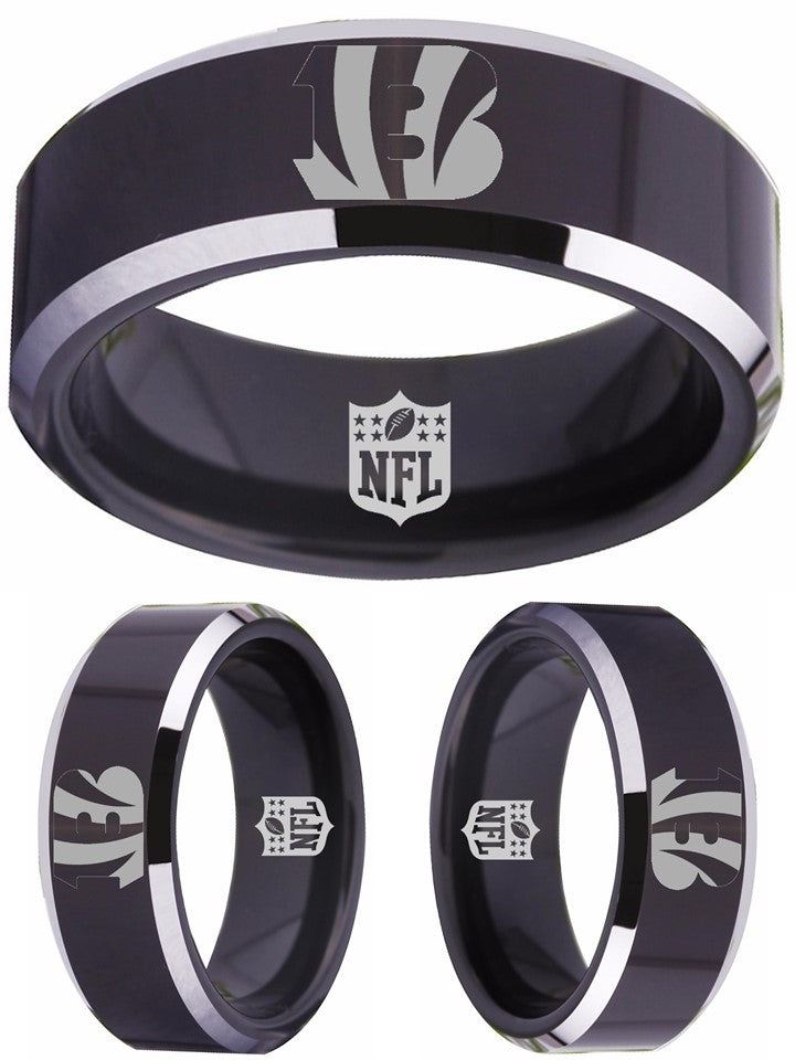 Cincinnati Bengals Ring Black & Silver Wedding Band | Sizes 4-17 #bengals