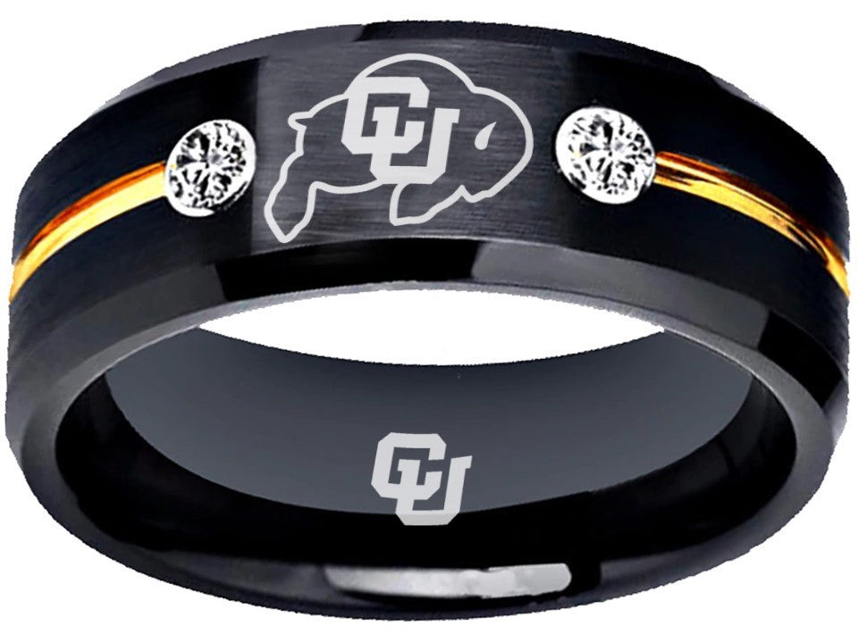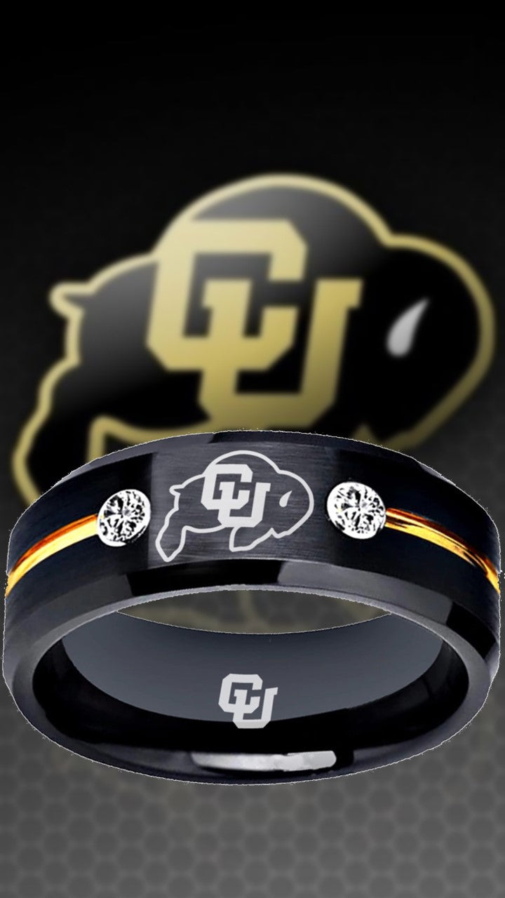Colorado Buffaloes Ring Black & Gold CZ Wedding Band | Sizes 6-13 #buffs #ncaa