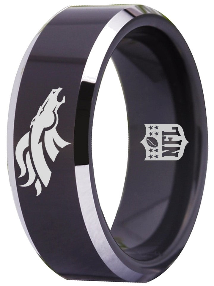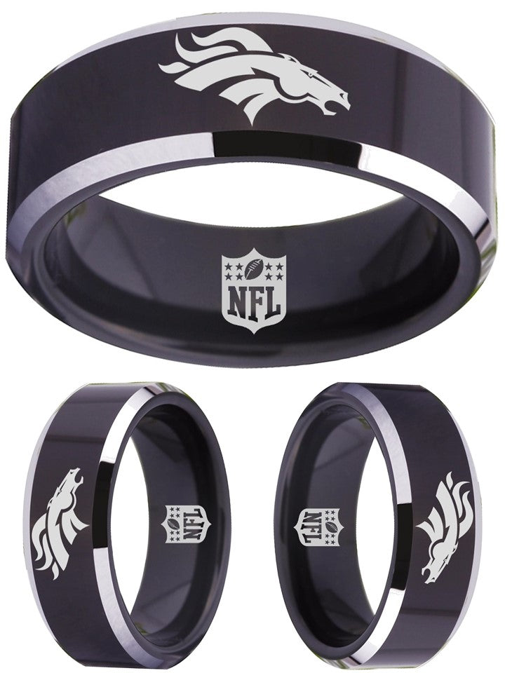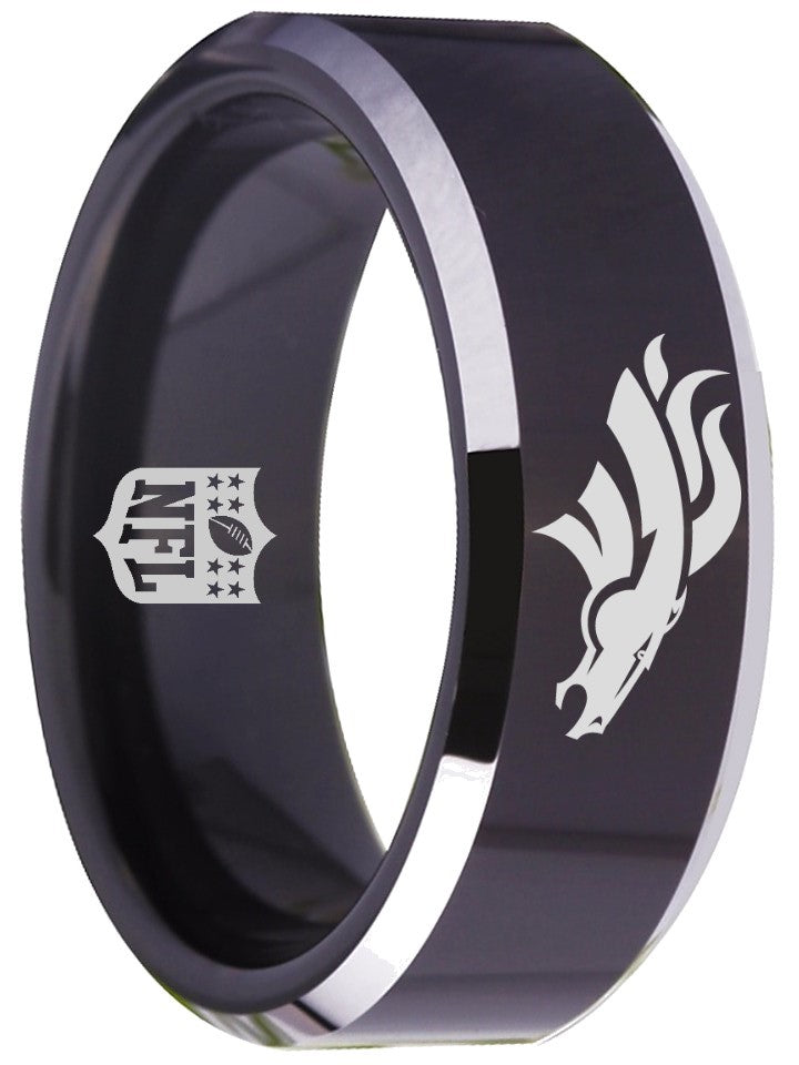 Denver Broncos Ring Black & Silver Wedding Band | Sizes 4-17 – Exclusive Inspirations