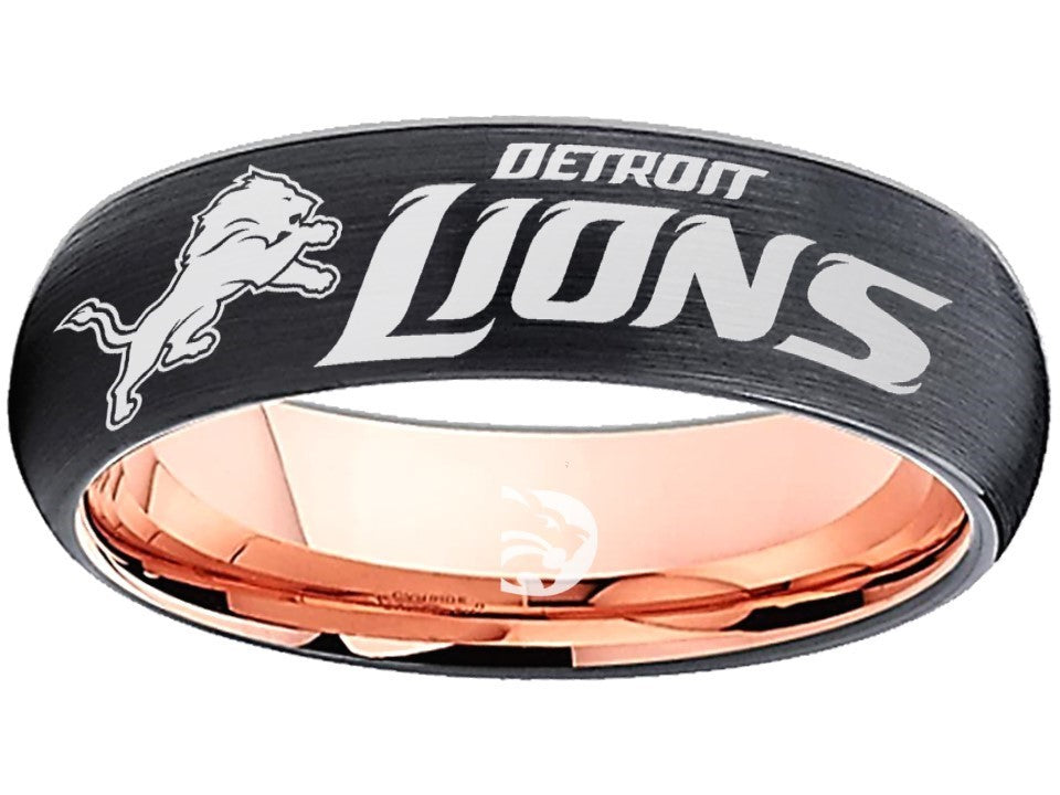 Detroit Lions Ring Black & Rose Gold Wedding Band 6mm | Sizes 6-13 #detroitlions #nfl