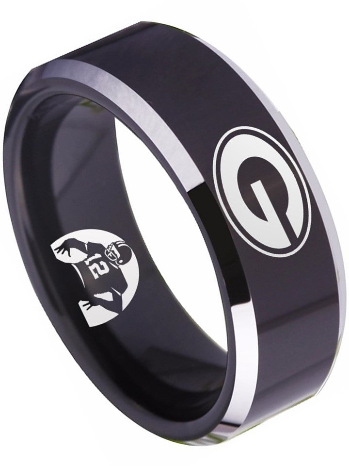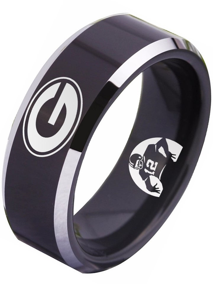 Green Bay Packers Ring | Black & Silver Wedding Ring | Sizes 4-17