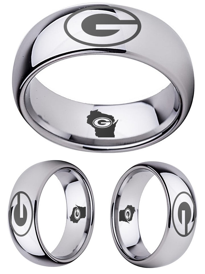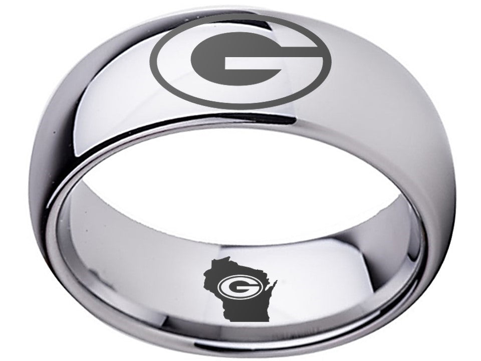 Green Bay Packers Ring Silver Wedding Band | Sizes 5-16