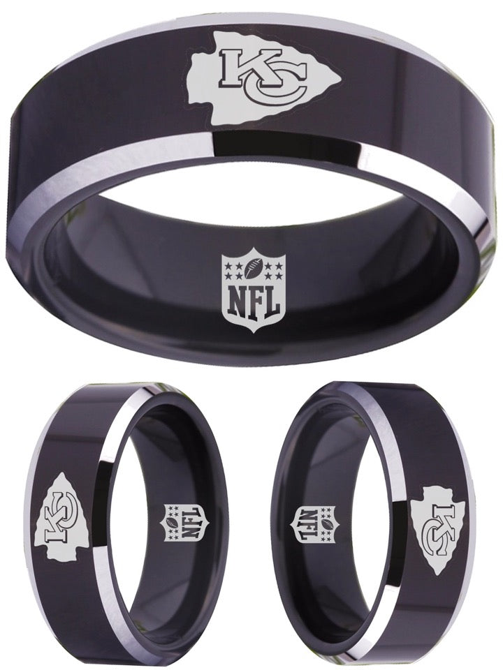 Kansas City Chiefs Ring Black & Silver Wedding Ring | Sizes 4-17 #kc #chiefs