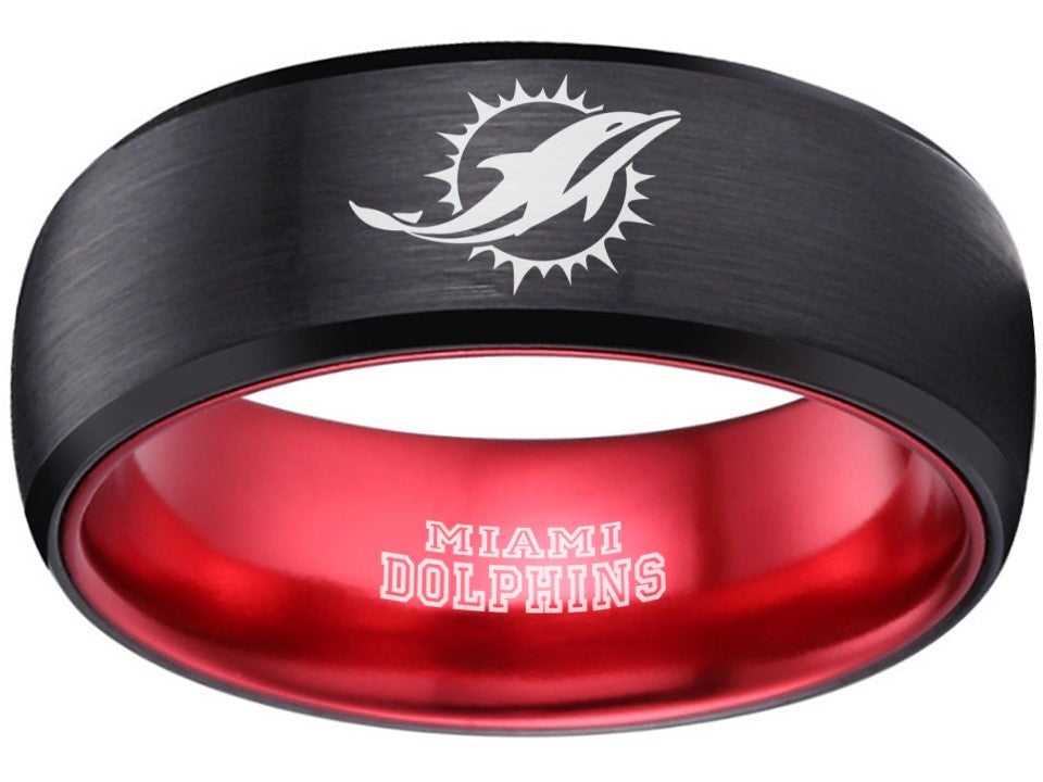 Miami Dolphins Ring Black & RedTungsten Wedding Ring #miami #dolphins #miamidolphins
