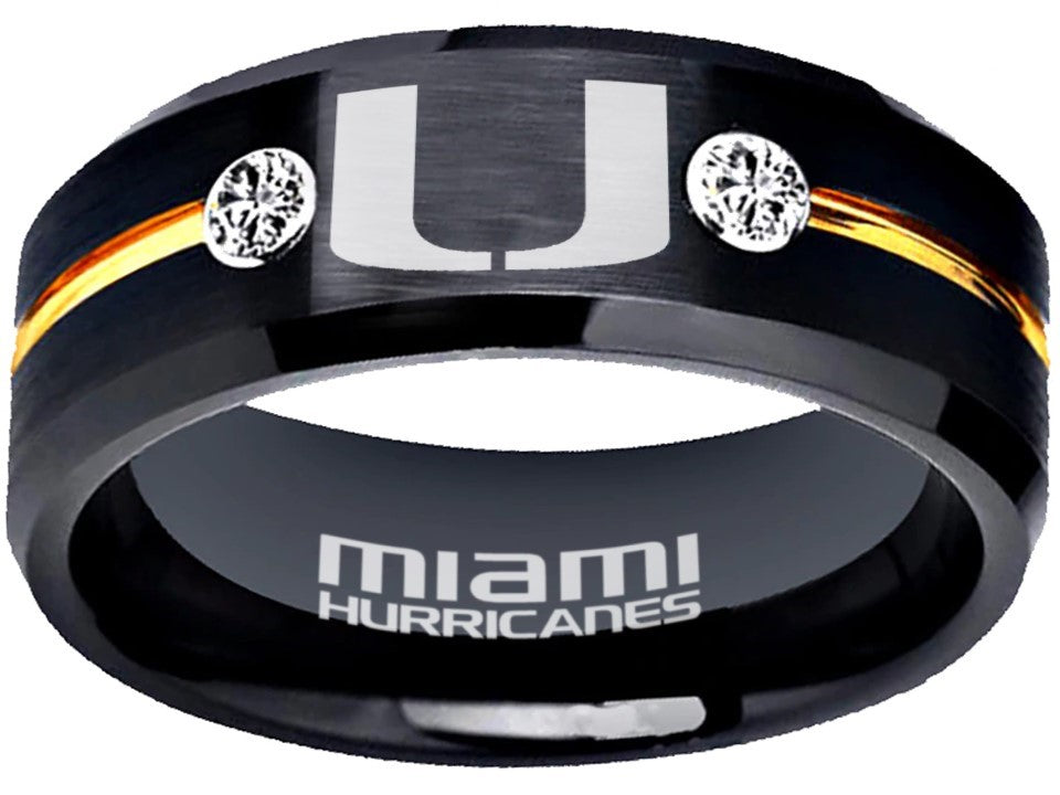 Miami Hurricanes Ring Black & Gold CZ Wedding Band | Sizes 6-13 #miami #hurricanes #TheU