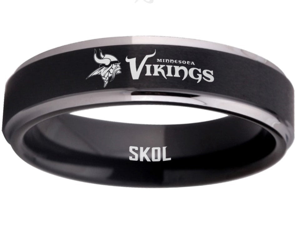 Minnesota Vikings Ring Black & Silver Wedding Band 6mm | Sizes 5-13 #vikings #skol #nfl