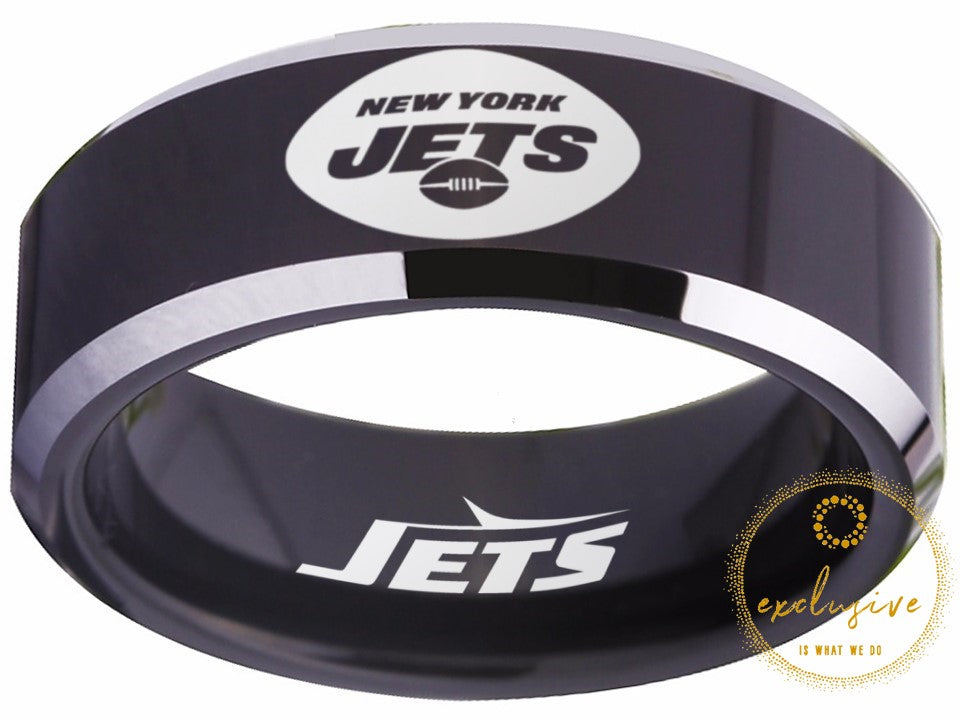 New York Jets Ring Black & Silver Wedding Ring Sizes 4 - 17 #jets #nyjets