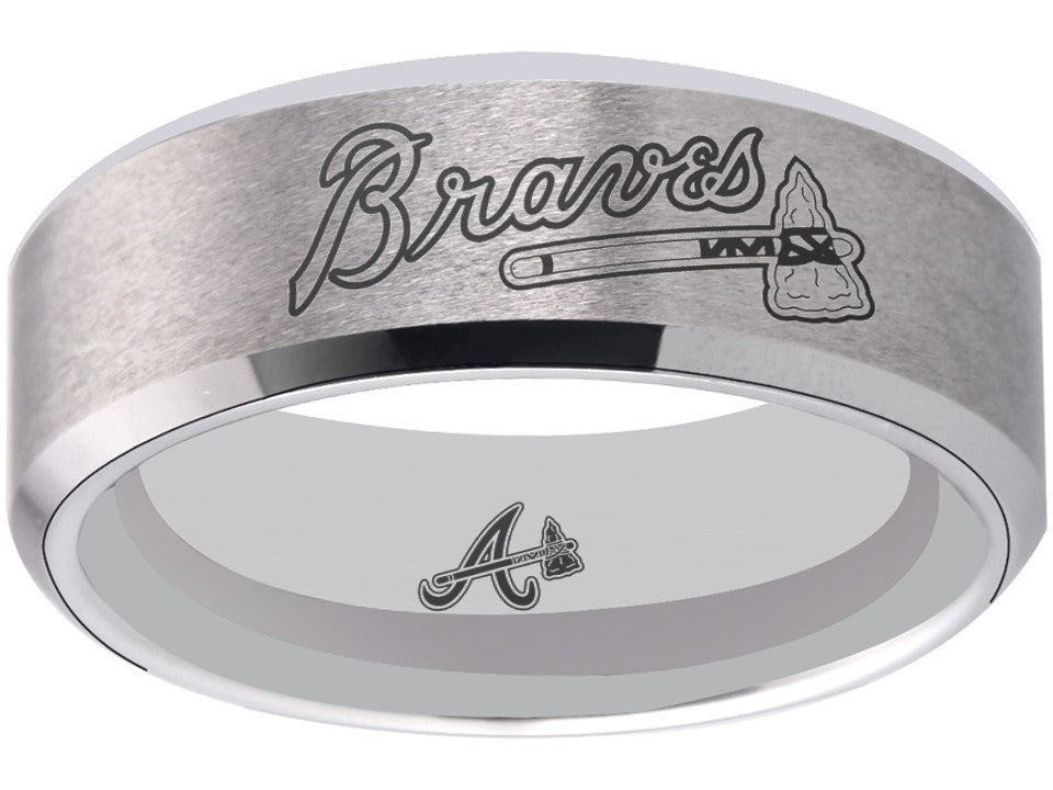 Atlanta Braves Ring matte Silver Tungsten Wedding Ring Sizes 6 - 13 #atlanta #braves