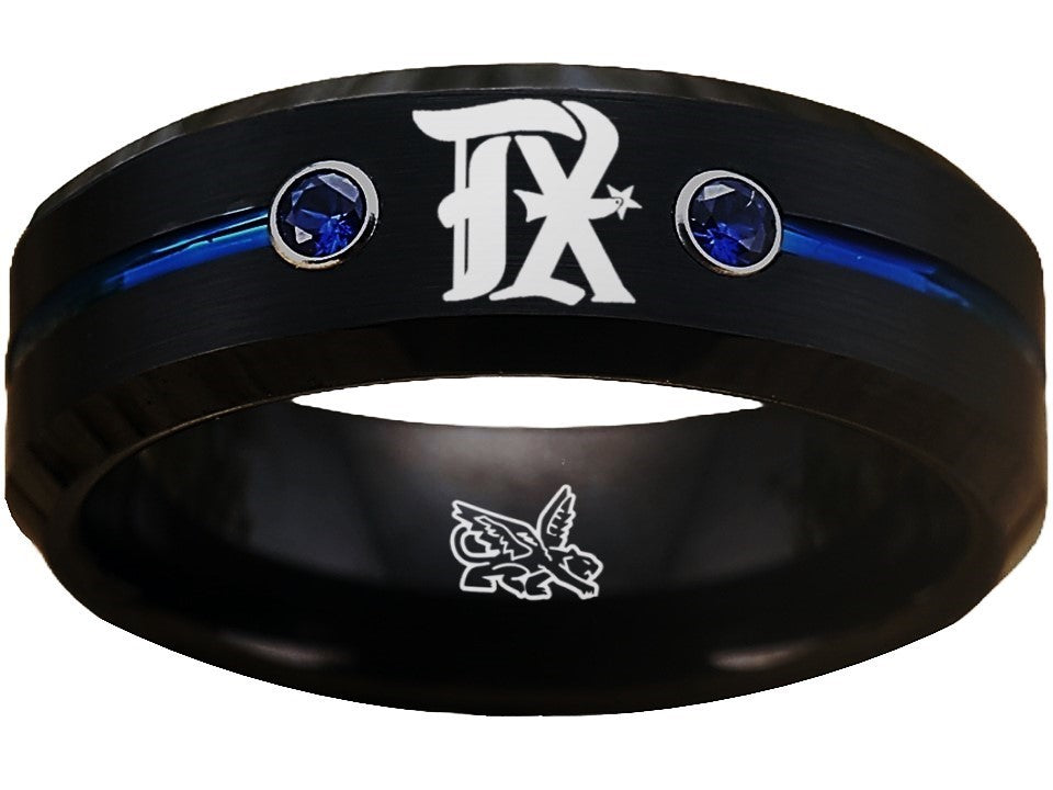 Texas Rangers City Connect Ring Black and Blue CZ Wedding Band Style | Sizes 6-13 #texasrangers