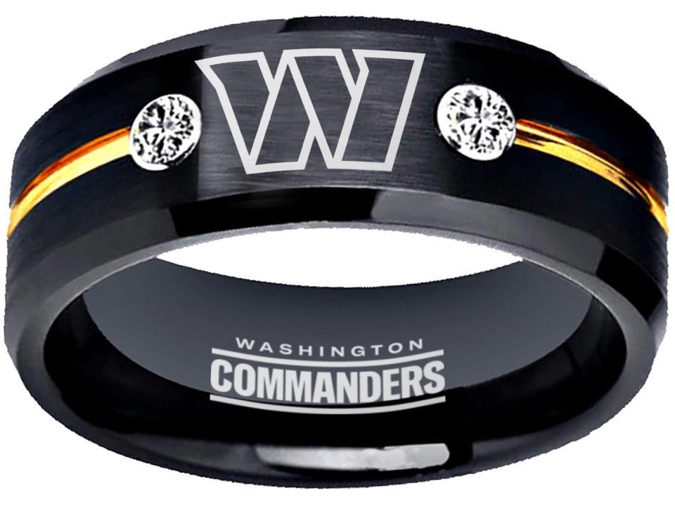 Washington Commanders Ring Black & Gold CZ Tungsten Wedding Ring #COMMANDERS